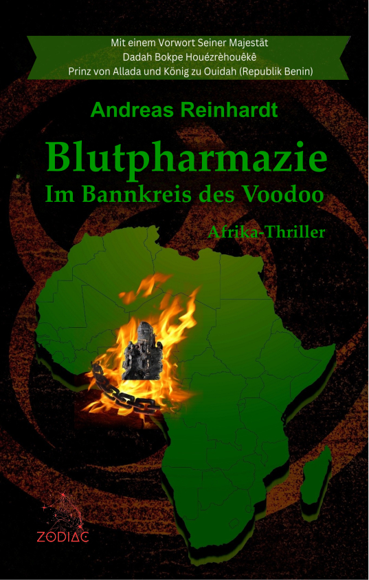 Ein spannender Afrika-Thriller, weit mehr als nur ein kurzweiliger Roman. - Virtuos vereint der Autor Fiktion und Realität aus Gegenwart und Historie zu einer Handlung, die sich ebenso informativ wie mystisch präsentiert. Im Nordwesten Benins hält eine geheimnisvolle Seuche die Menschen in Atem – mit tödlicher Wirkung. Zeitnah gelingt es einem US-Pharmaunternehmen, die Epidemie einzudämmen. Doch ist die Krankheit tatsächlich so unbekannt, und welche Rolle spielt das Pharmaunternehmen ERHC wirklich? Fragen, welche die Geheimgesellschaft "Wächter der Schöpfung" auf den Plan rufen. Und diese entsendet ihren besten Agenten BONIFACIUS KIDJO nach Cotonou. An seiner Seite eine Beninerin – promovierte Virologin und noch weitaus mehr. Schnell bekommt er es mit Feinden zu tun, die selbst vor Mordkommandos und Hexerei nicht zurückschrecken, um einen perfiden Plan zum Abschluss zu bringen. Die geheime Mission führt ihn quer durch Benin und bis in den Regenwald Zentralafrikas. Doch der Schlüssel zur Lösung liegt vor allem in der Vergangenheit des Landes verborgen – in Sklaverei, den Untaten eines Königs, einem Fluch. Und bei jedem Schritt allgegenwärtig und relevant zeigt sich auch die Macht des Voodoo – im Guten wie im Bösen. Eine ebenso epische wie mystische Schlacht im "Afrikanischen Venedig" Ganvié läutet schließlich den Showdown in Cotonou ein. »[...] In einer Legende aus der Bucht von Benin heißt es: ‘Die von westafrikanischen Herrschern als Geldmittel importierten Kaurimuscheln wuchsen auf den Körpern toter Sklaven, die von den Sklavenschiffen ins Meer geworfen worden waren.’ [...]« Nach "BLUTCOLTAN - Großangriff der zivilisierten Welt" wirft Reinhardts zweiter Roman um den vielschichtigen Agenten mit deutsch-afrikanischen Wurzeln einen düsteren Blick auf das globale Zeitalter geheimnisvoller Krankheiten, Seuchen und Pandemien.